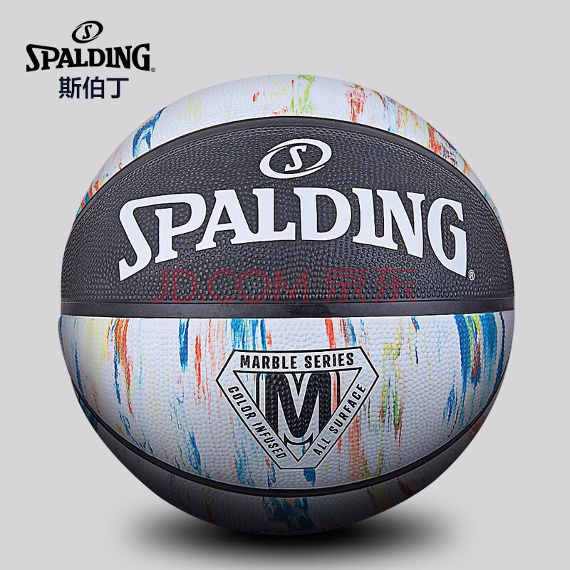 商品相册:斯伯丁大理石印花系列耐磨经典花球7号橡胶篮球84-404Y黑色/白色第