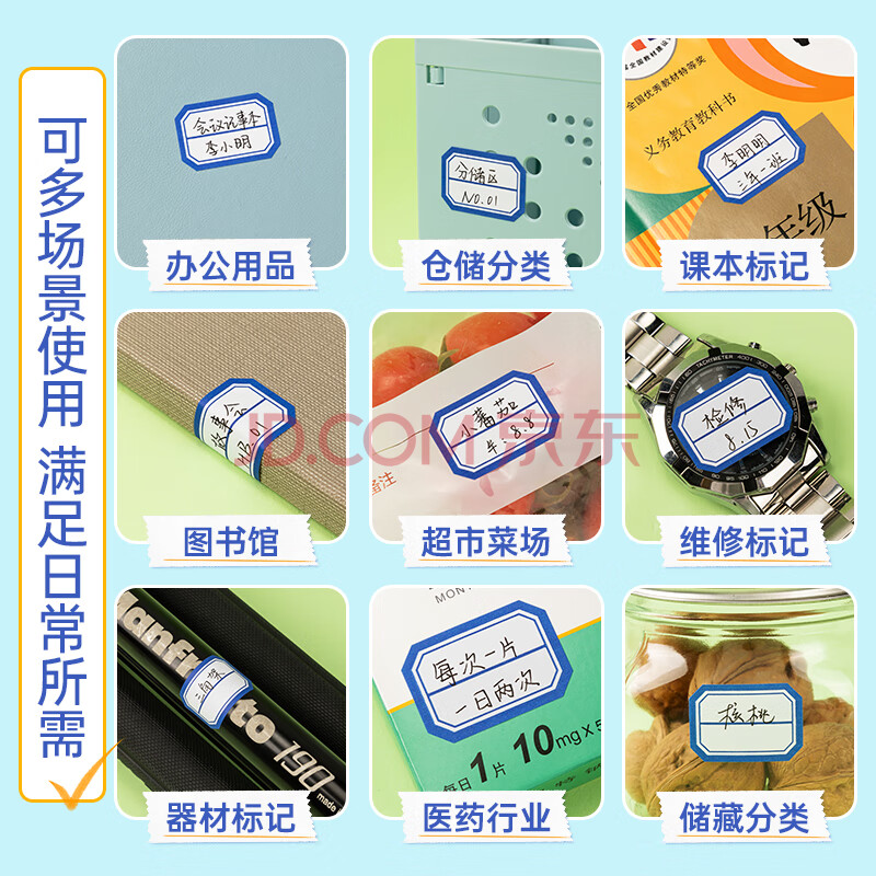 商品相册:得力(deli)96枚23*33mm蓝框不干胶标签贴纸便利贴自粘性标贴姓名贴 7190开学礼物第
