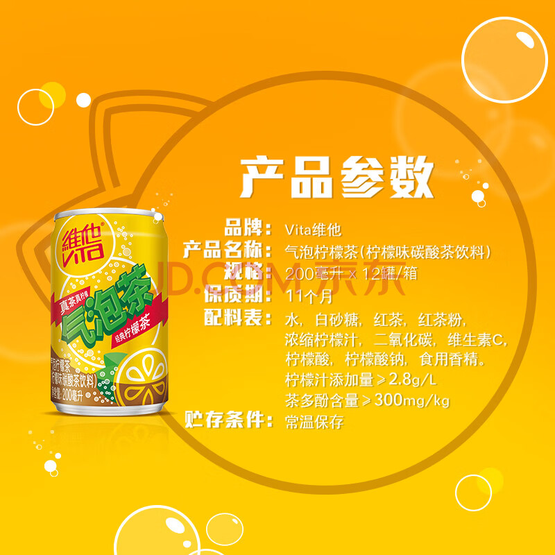 商品相册:维他奶维他气泡柠檬味碳酸茶饮料200ml*12罐 开学季第