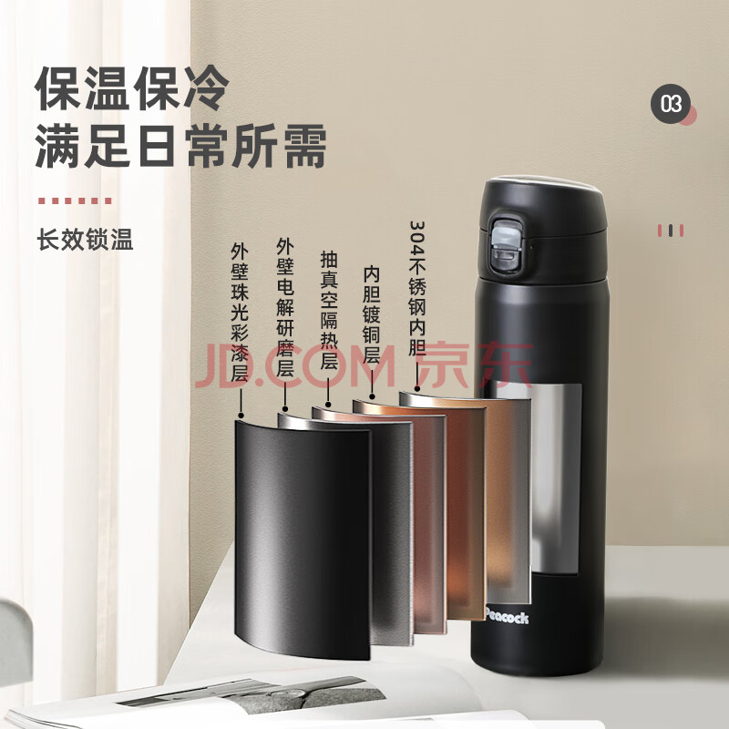商品相册:孔雀(Peacock)保温杯 男士大容量不锈钢便携保冷杯商务礼品可定制第