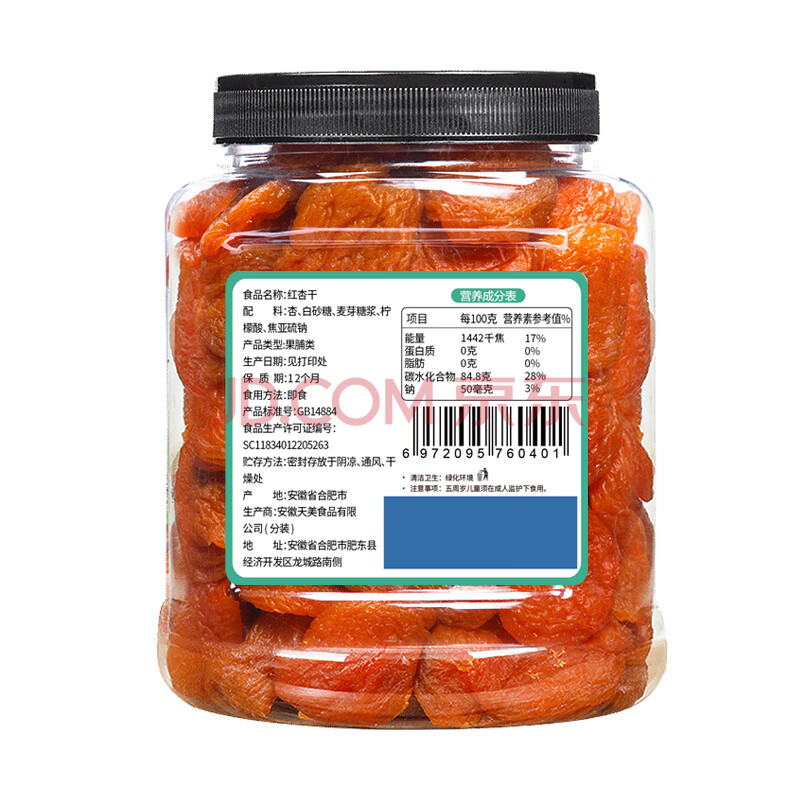 商品相册:百历坚 红杏干500g/罐 吊干杏 蜜饯果干办公室零食休闲食品果脯年货送礼第