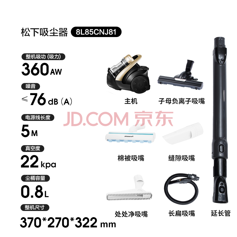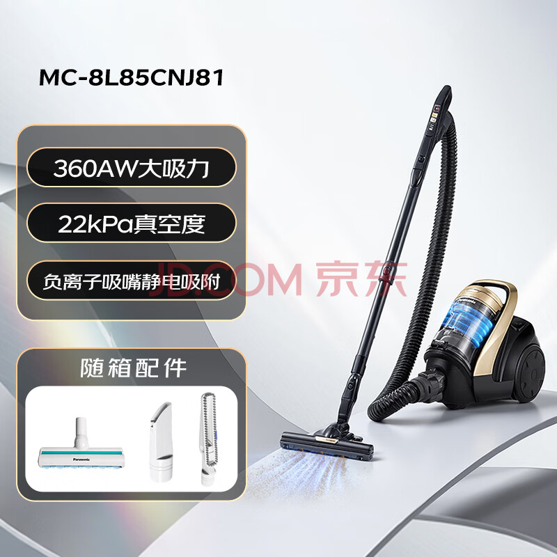 商品相册:松下(Panasonic)卧式有线吸尘器家用大吸力手持长续航垃圾压缩机清洁机吸猫毛除毛宠物节能微尘感知MC-8L85CNJ81第