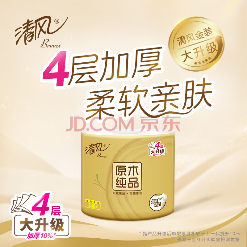 商品相册:清风有芯卷纸 原木金装4层130克*27卷 卫生纸 纸巾整箱 厕纸 卷筒纸第