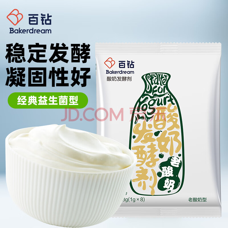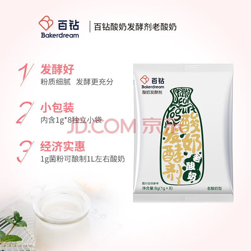 商品相册:百钻安琪老酸奶发酵菌4菌型 家用自制酸奶发酵菌粉发酵剂乳酸菌种1g*8第