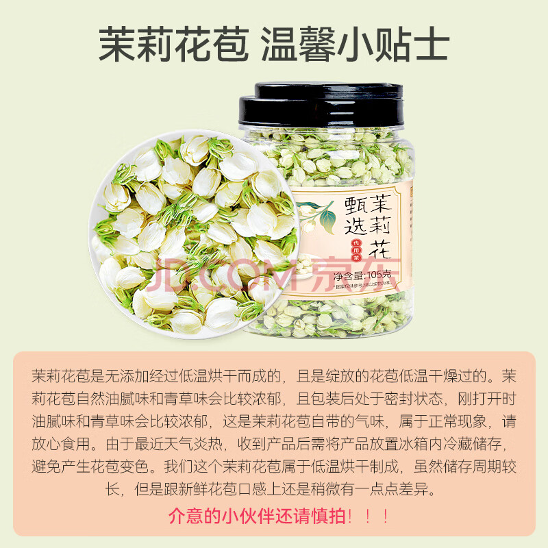 商品相册:贡苑花草茶 茉莉花苞105g/罐 横县原产茉莉花茶干花蕾养生茶叶泡水喝第