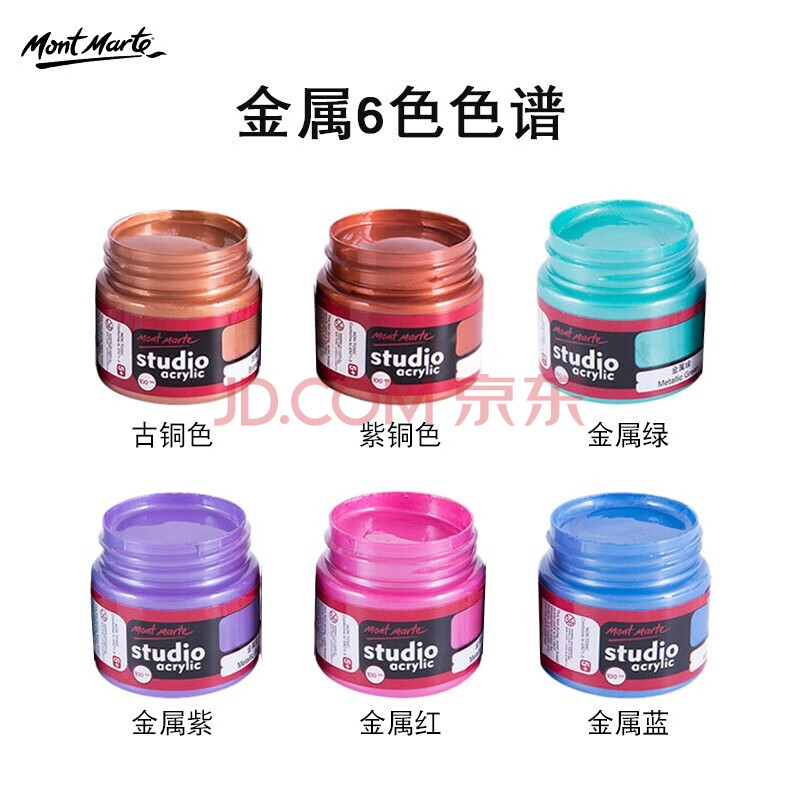 商品相册:蒙玛特(MontMarte)丙烯颜料6色100ml丙烯画颜料金属色防水颜料VSX-MSCH11×6sTZ2美育工具第