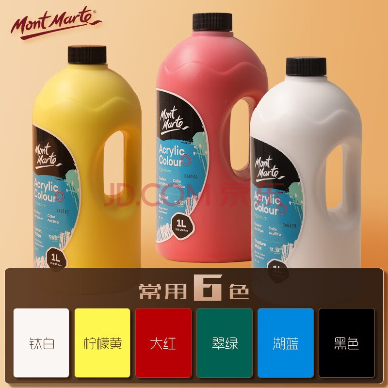 商品相册:蒙玛特(MontMarte)丙烯颜料6色1l丙烯画颜料手绘墙绘绘画涂鸦防水颜料VSX-MSCH01×6S美育工具第