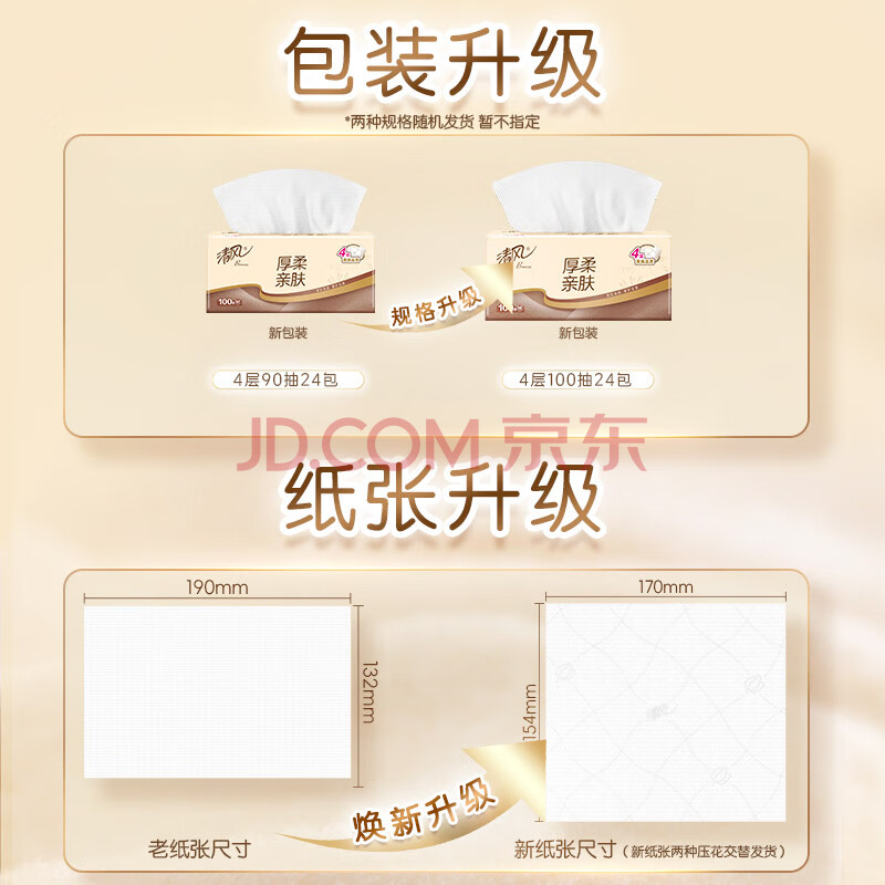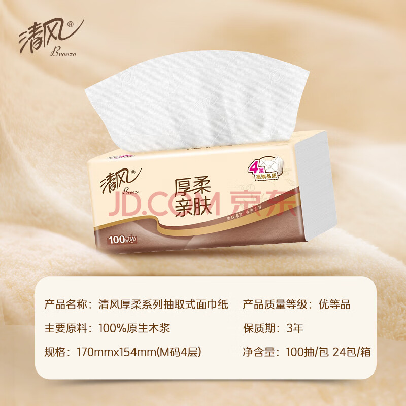商品相册:清风抽纸 厚柔4层100抽*24包M码 纸巾面巾纸 卫生纸 餐巾纸 整箱销售第