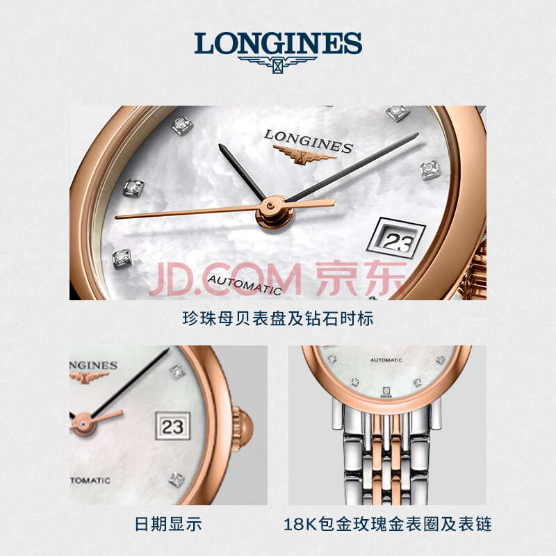 商品相册:浪琴(LONGINES)瑞士手表 博雅系列 女士钢带机械表 L43095877第