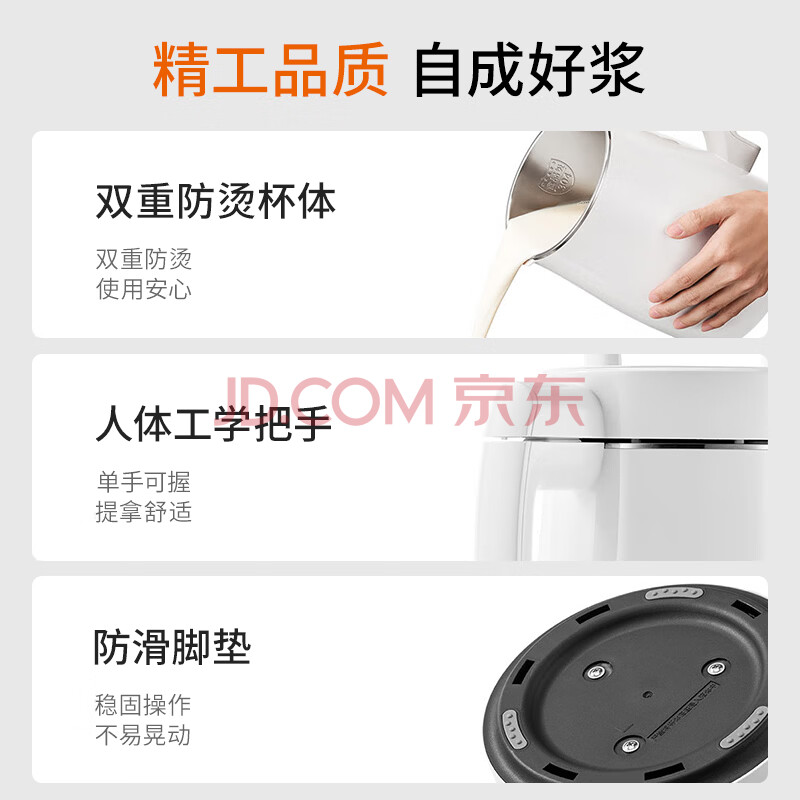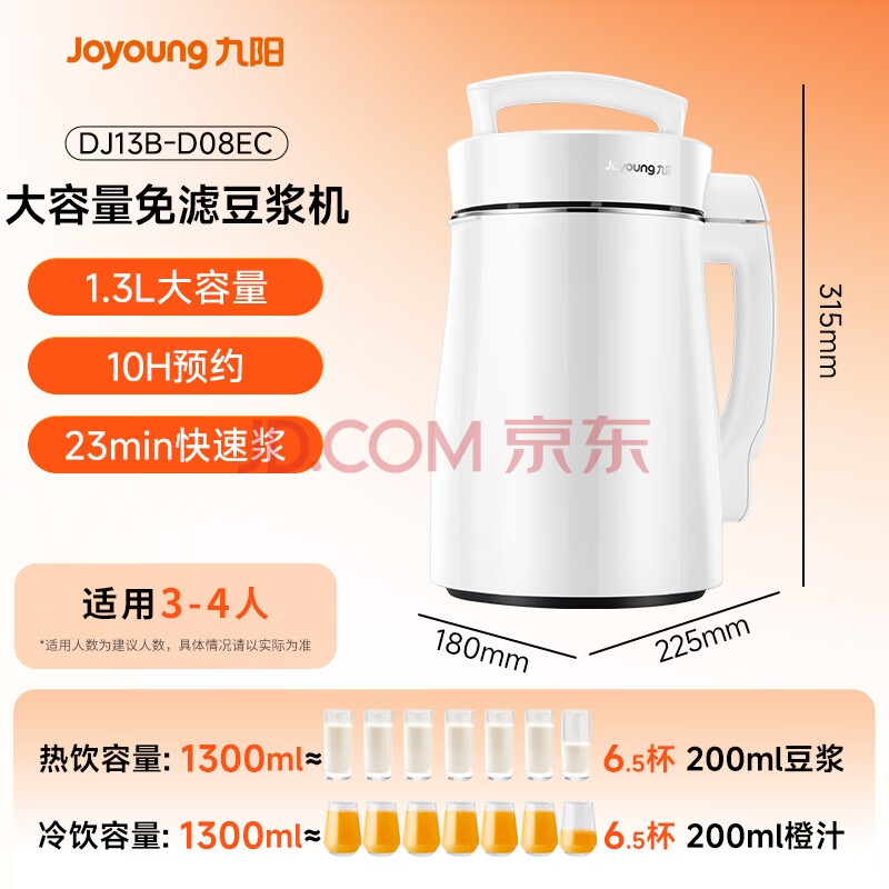 商品相册:九阳(Joyoung)豆浆机1.3L破壁免滤轻音降噪304不锈钢3-4人用家用多功能全自动榨汁机料理机DJ13B-D08EC第