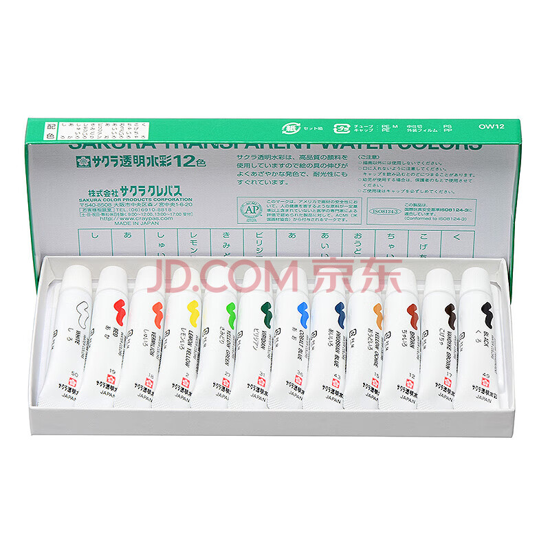 商品相册:【全网低价】樱花(SAKURA)水彩颜料美术绘画 透明水彩 12色套装 OW12 5ml/支【日本进口】 速写素描第