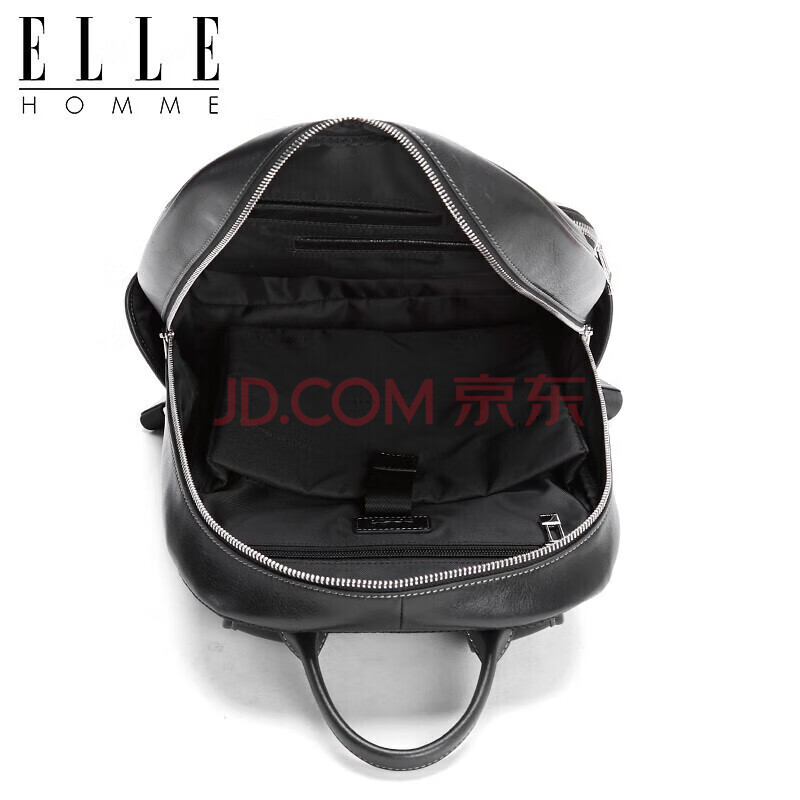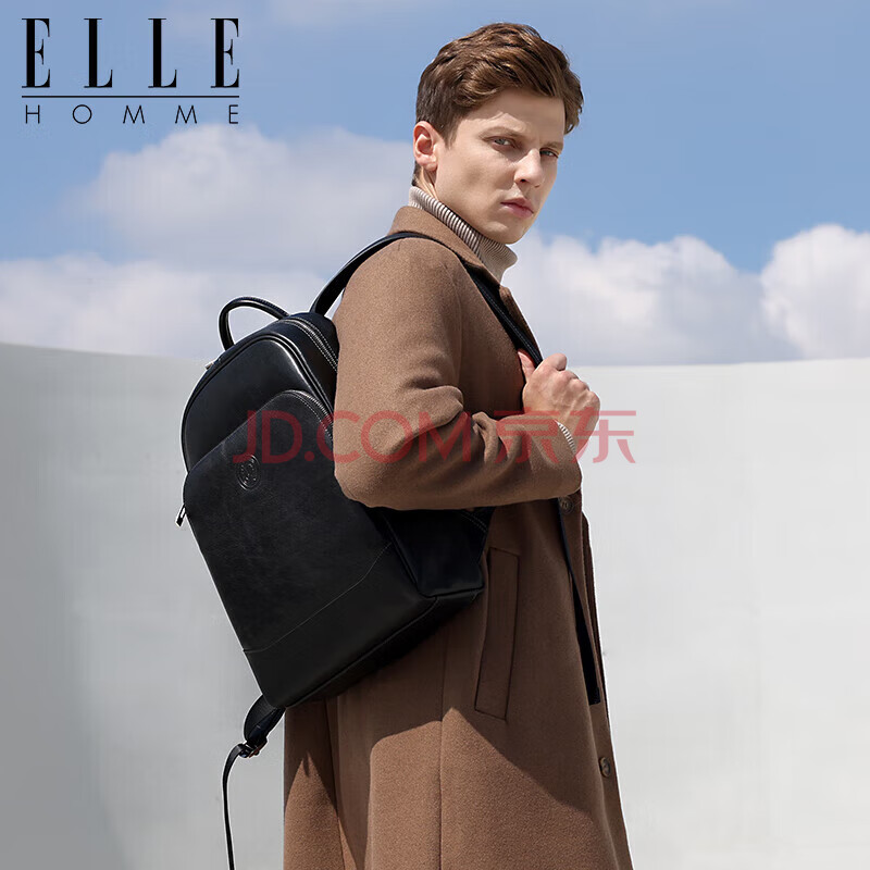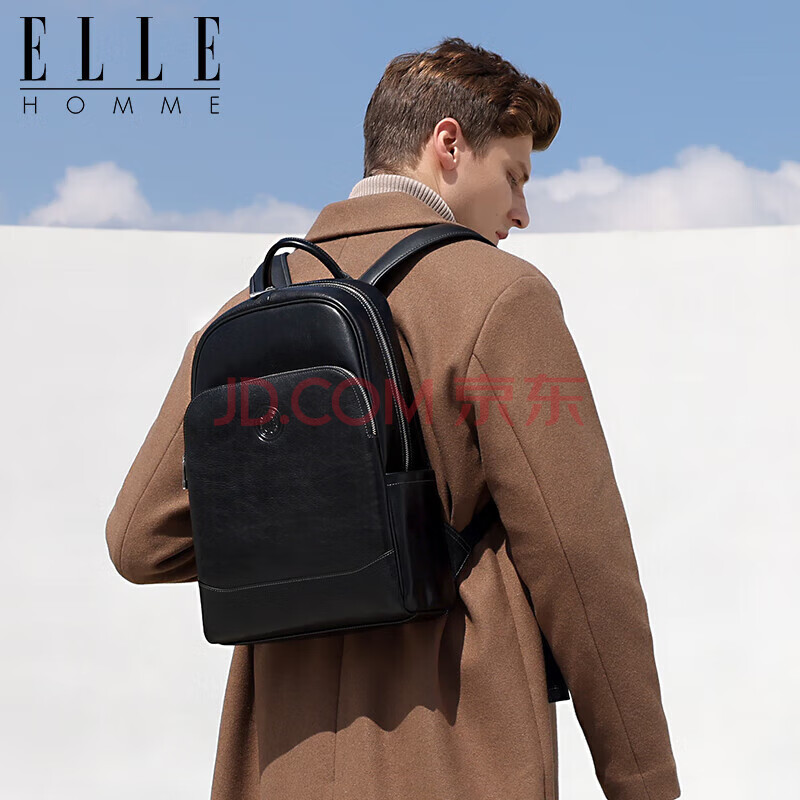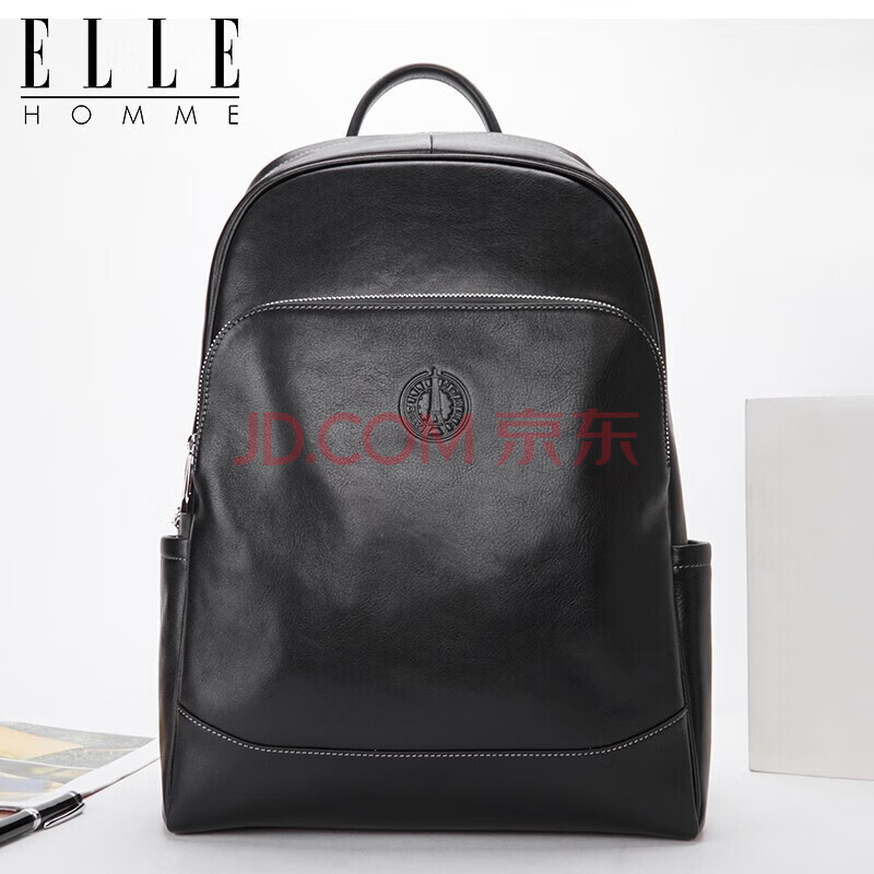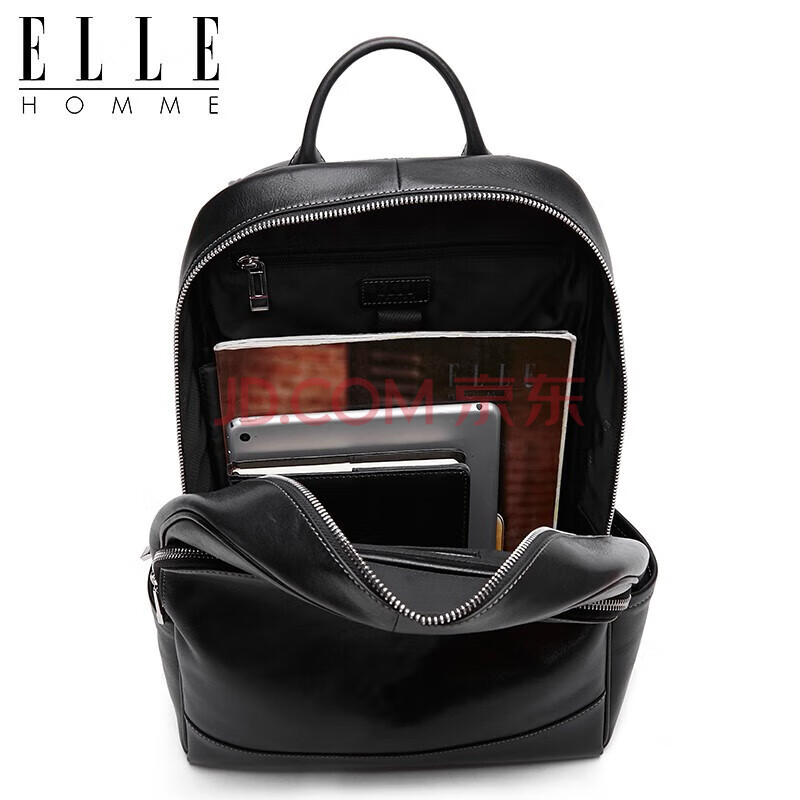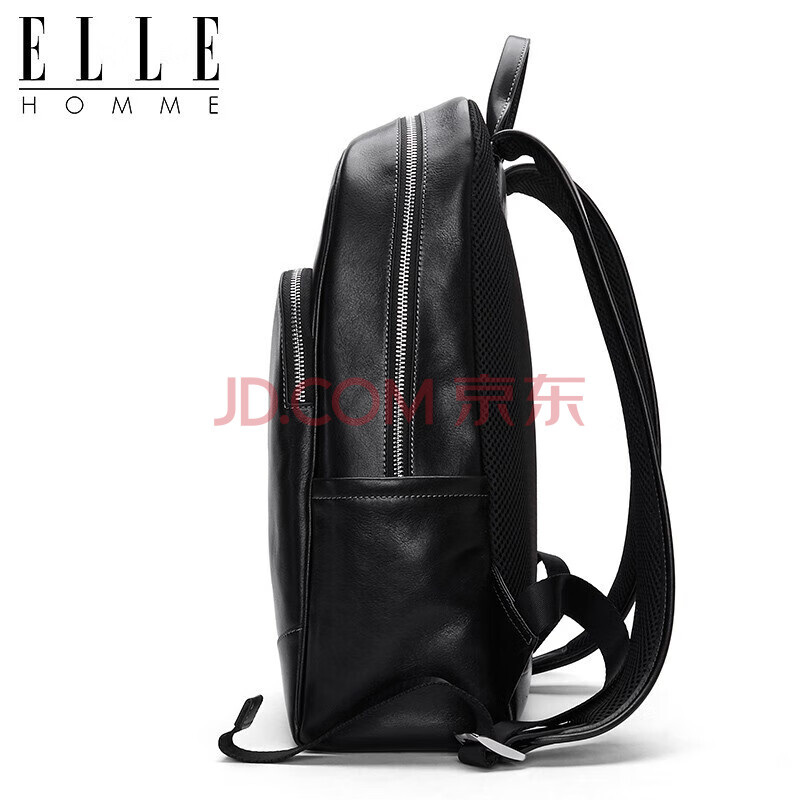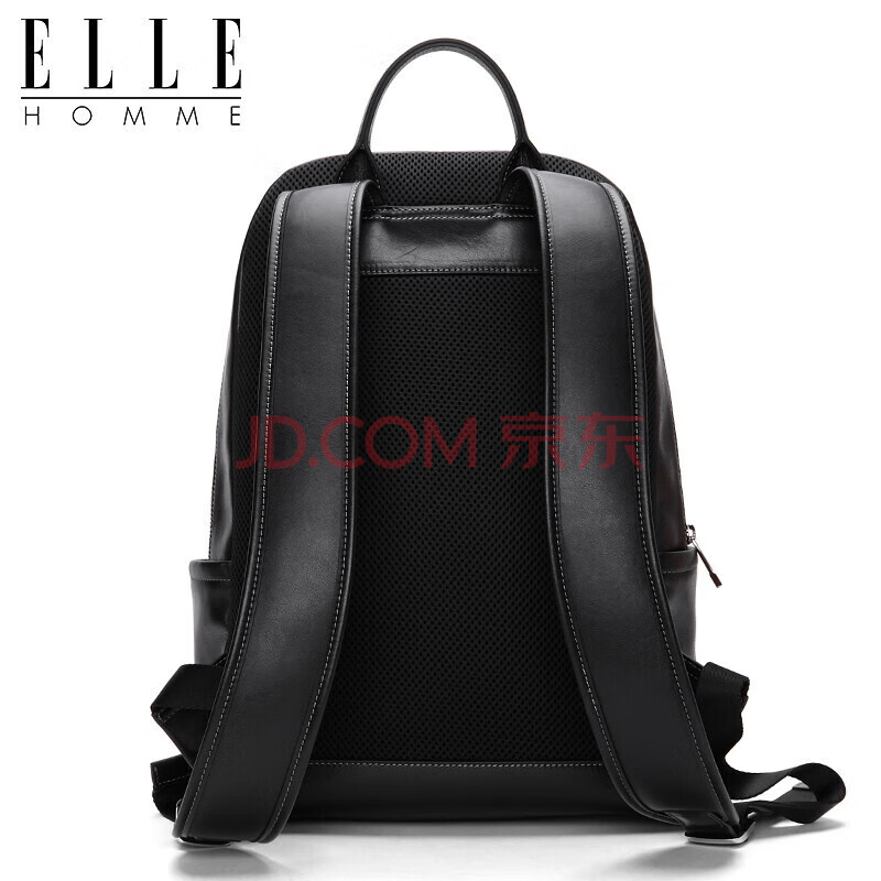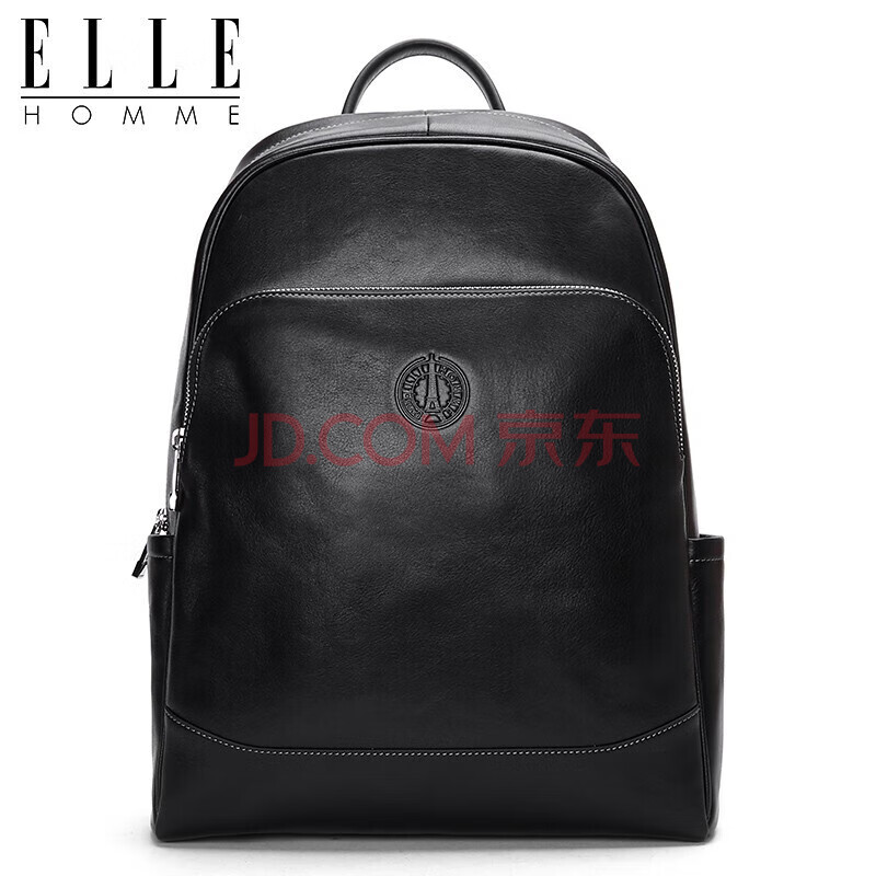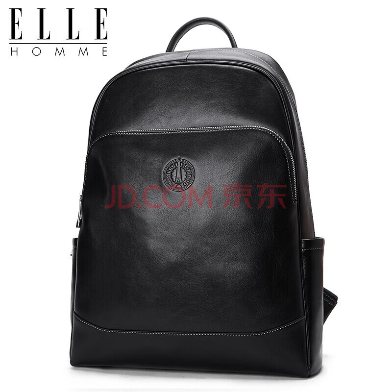 商品相册:ELLE HOMME男士双肩包潮流时尚牛皮背包 休闲户外书包EA788207261黑色第