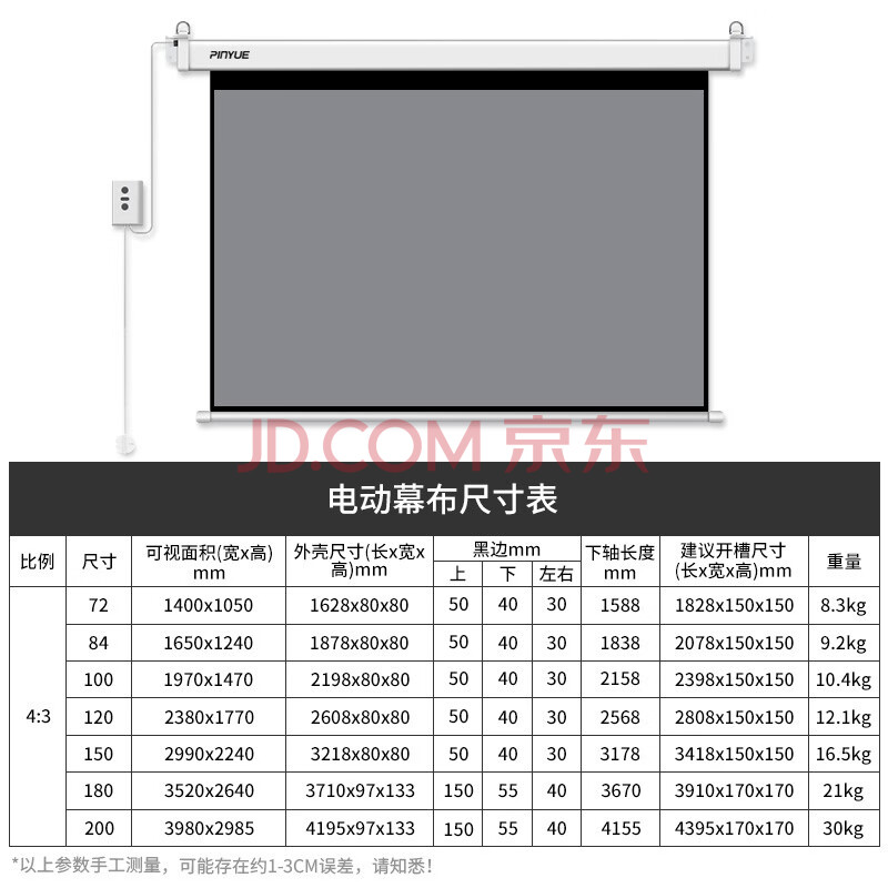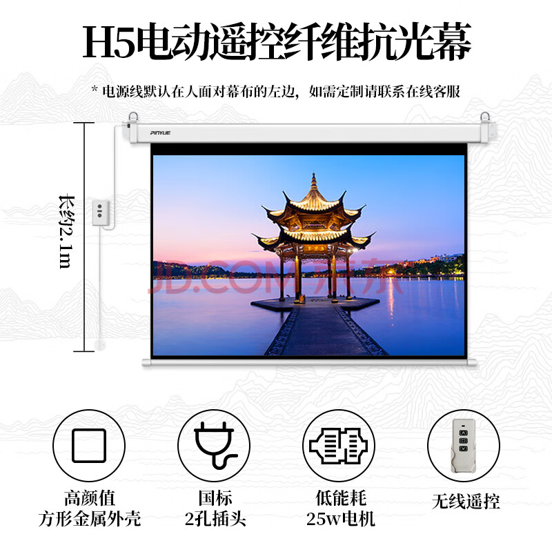 商品相册:品跃(PInYUE)投影仪幕布120英寸4:3电动抗光幕布投影幕布4k/3D家用办公纤维抗光幕第