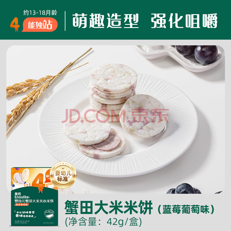 商品相册:英氏(Engnice)婴幼儿夹心米饼蟹田大米蓝莓葡萄味宝宝零食磨牙饼干 营养米饼42g第