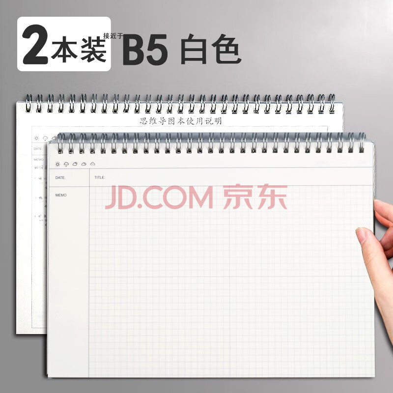 商品相册:XYBP思维导图笔记本线圈学习计划本子B5大学生网格小学生考研阅读方格手绘空白活页本(2本装160张)第
