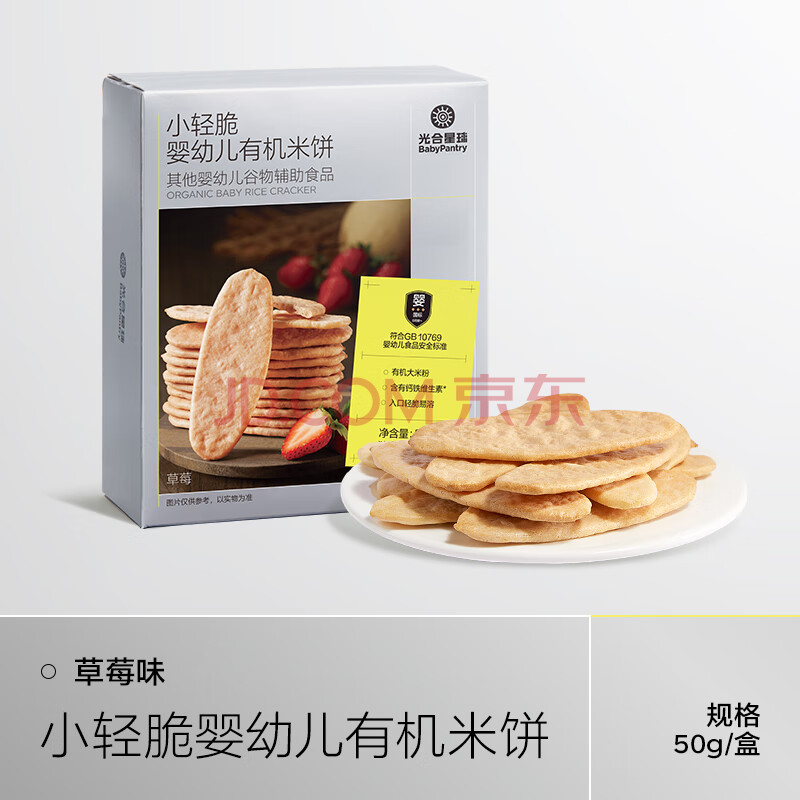 商品相册:光合星球babycare儿童零食宝宝磨牙棒婴幼儿有机米饼草莓味50g 6月+第