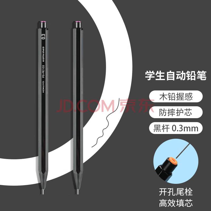 商品相册:国誉(KOKUYO)进口学生高考自动铅笔0.3mm绘画作图活动铅笔防断芯书写笔 黑色1支 PS-PE103D-1P第