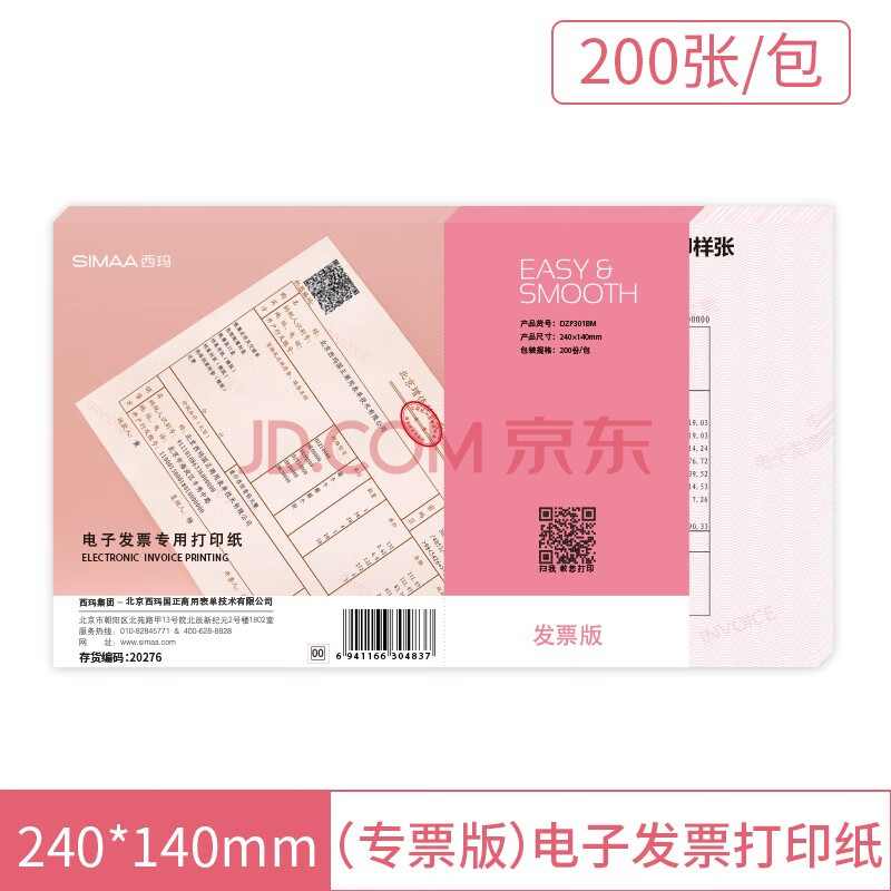 商品相册:西玛(SIMAA)增值税普通电子发票专用打印纸240*140mm(发票版) 200页/包 DZP301BM第