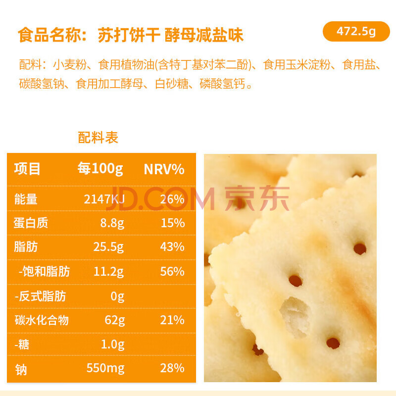 商品相册:Aji 苏打饼干 酵母减盐味472.5g/袋 营养早餐夜宵咸零食休闲 下午茶第1张/共3