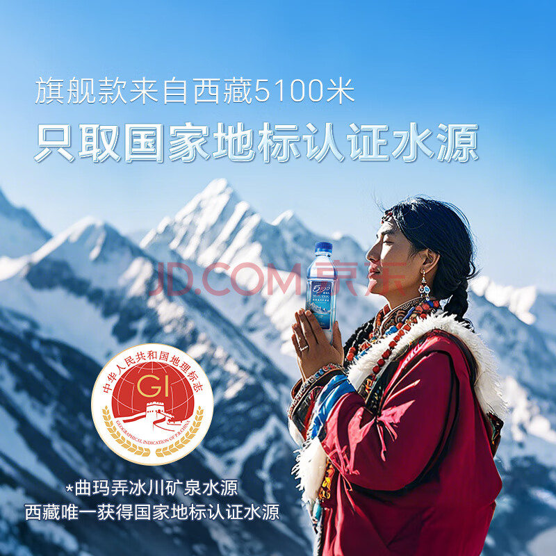 商品相册:5100西藏冰川矿泉水500ml*24瓶整箱 刘涛同款高端弱碱低氘饮用矿泉水 第