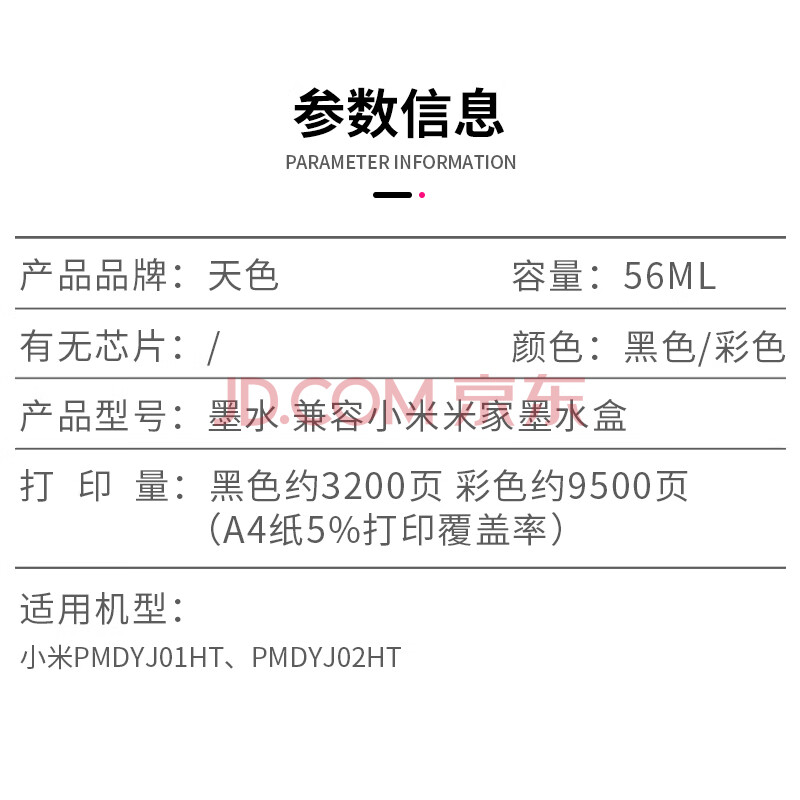 商品相册:天色适用小米打印机墨盒墨水 小米米家喷墨打印机墨盒墨水 黑色第
