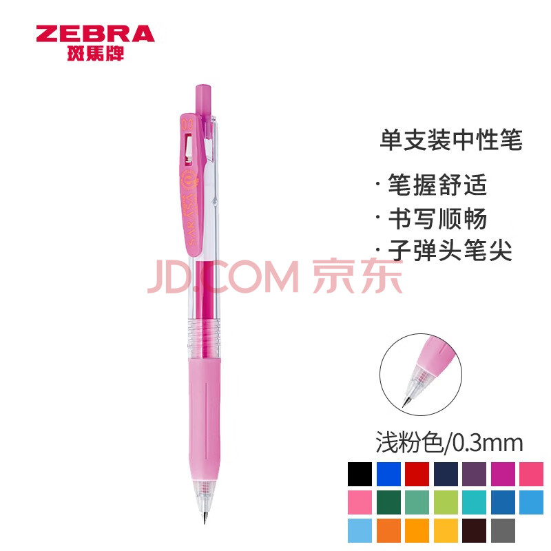 商品相册:斑马牌(ZEBRA)按动中性笔 0.3mm子弹头啫喱笔水笔 财务会计记账专用签字笔 JJH15 浅粉色第