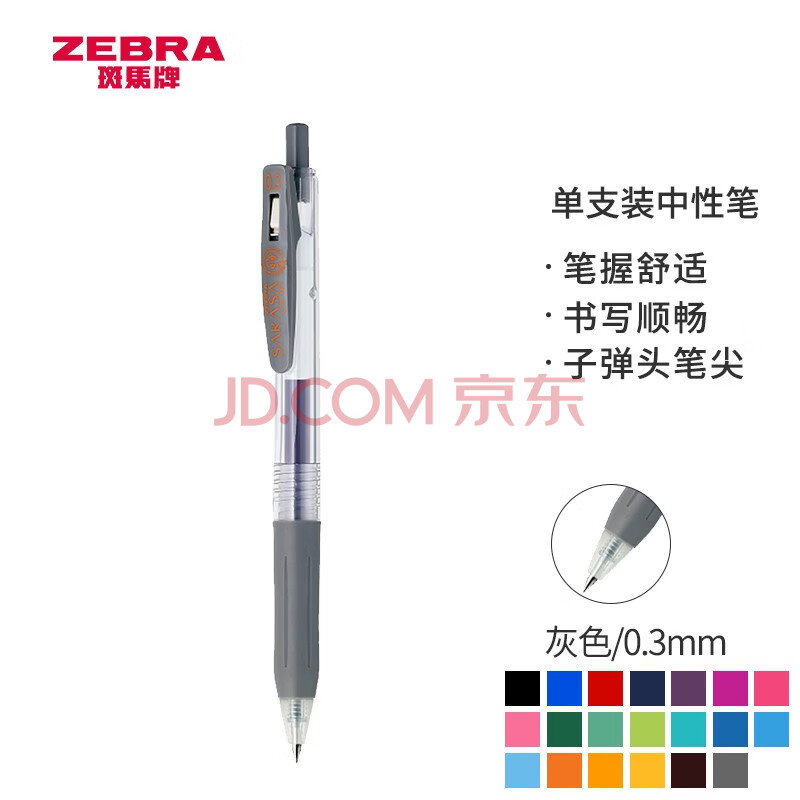 商品相册:斑马牌(ZEBRA)按动中性笔 0.3mm子弹头啫喱笔水笔 财务会计记账专用签字笔 JJH15 灰色第