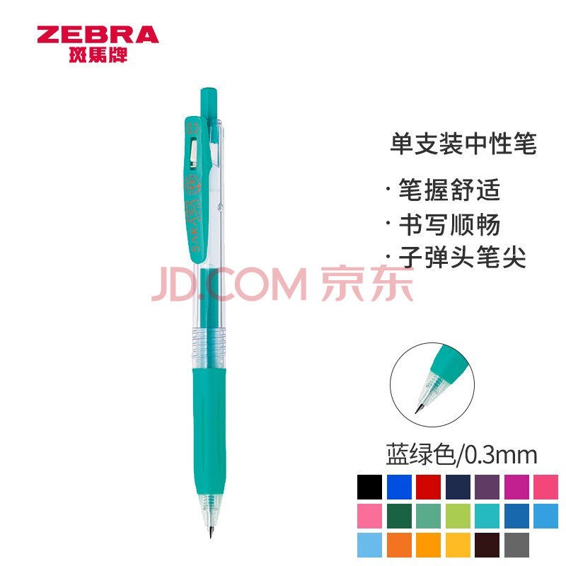 商品相册:斑马牌(ZEBRA)按动中性笔 0.3mm子弹头啫喱笔水笔 财务会计记账专用签字笔 JJH15 蓝绿色第