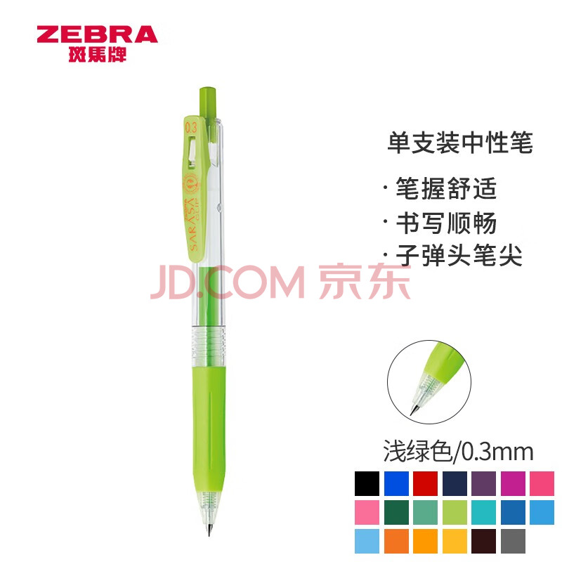 商品相册:斑马牌(ZEBRA)按动中性笔 0.3mm子弹头啫喱笔水笔 财务会计记账专用签字笔 JJH15 浅绿色第