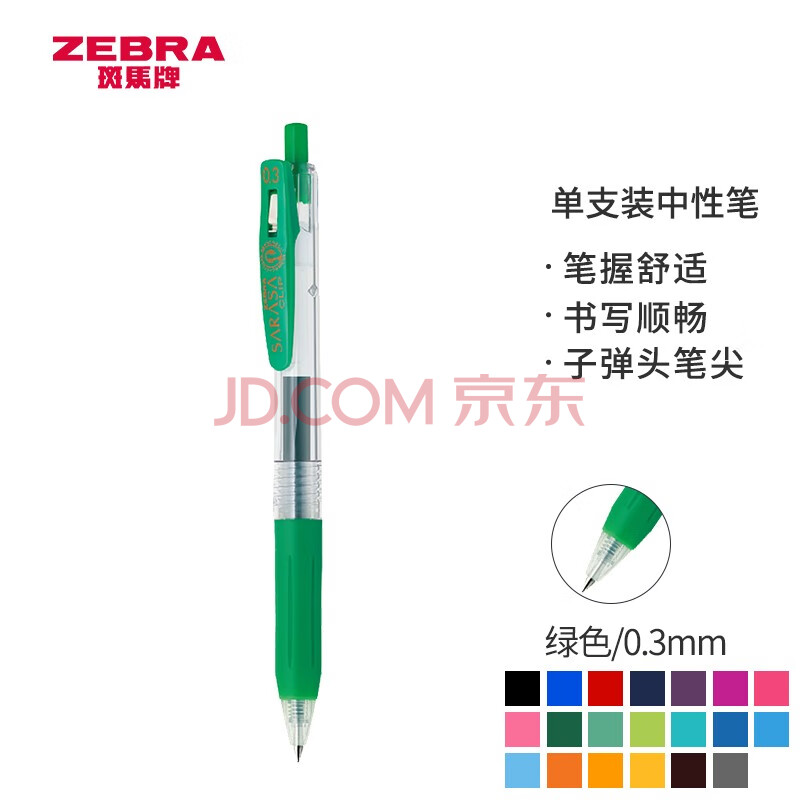 商品相册:斑马牌(ZEBRA)按动中性笔 0.3mm子弹头啫喱笔水笔 财务会计记账专用签字笔 JJH15 绿色第