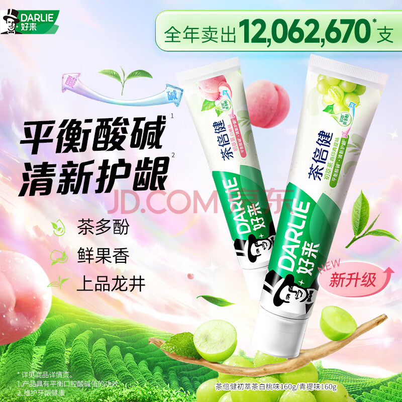 商品相册:好来(DARLIE)(原黑人)茶倍健初萃茶白桃味牙膏160g果味清新护龈新旧包装随机第