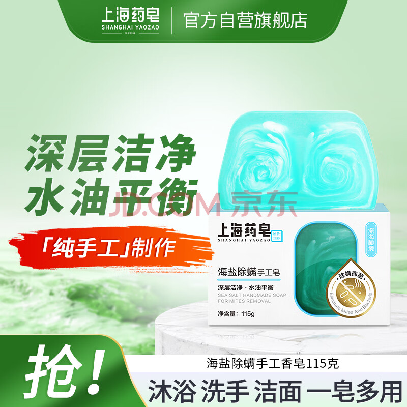 商品相册:上海药皂海盐除螨手工皂115g洗脸香皂洁面皂沐浴洗澡洗手肥皂男女学生第