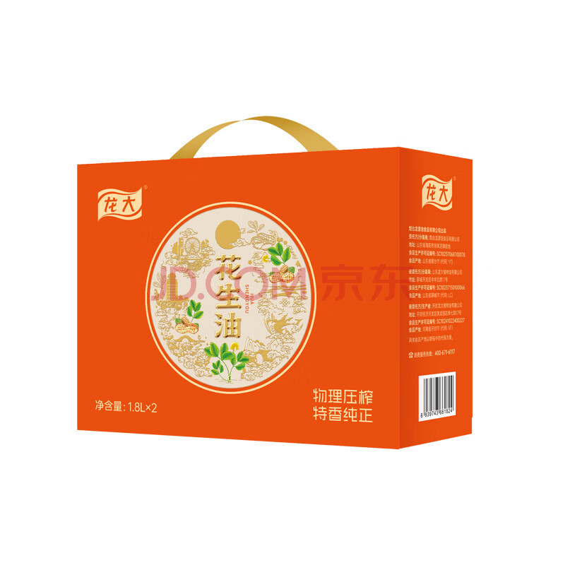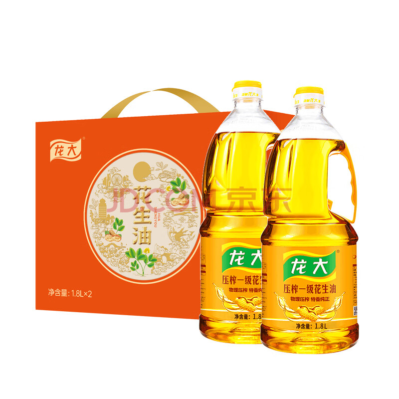 商品相册:龙大【保真花生油】食用油 压榨一级 特香花生油 1.8L*2(礼盒)第1张/共3