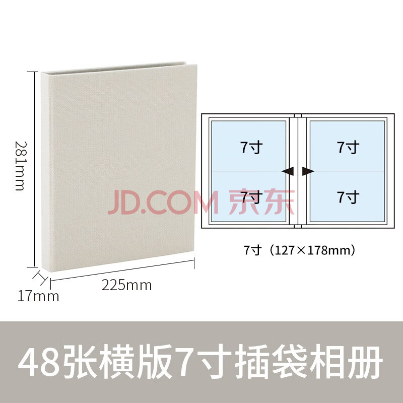 商品相册:Nakabayashi仲林插页式相册本48张7寸/布艺插袋式家庭影集/横版相册簿照片书 A-COP2L-480W 白色第