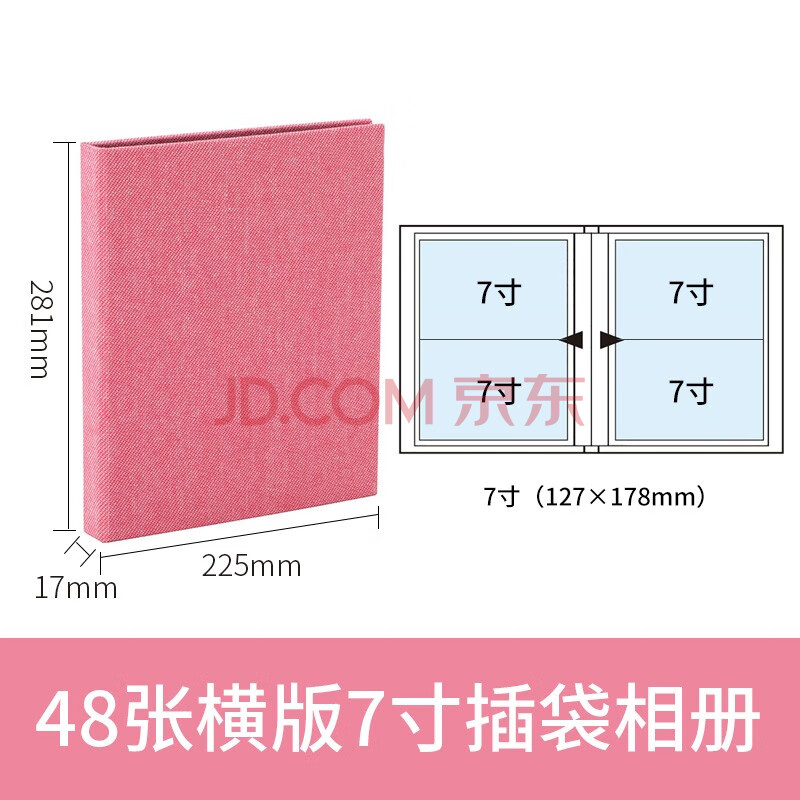 商品相册:Nakabayashi仲林插页式相册本48张7寸/布艺插袋式家庭影集/横版相册簿 A-COP2L-480P 粉色照片书第