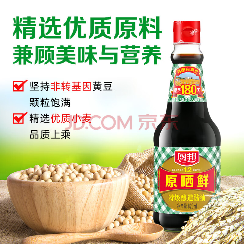 商品相册:厨邦酱油 原晒鲜系列 生抽 酱油【特级酱油】820ml 酿造酱油 炒菜调味第