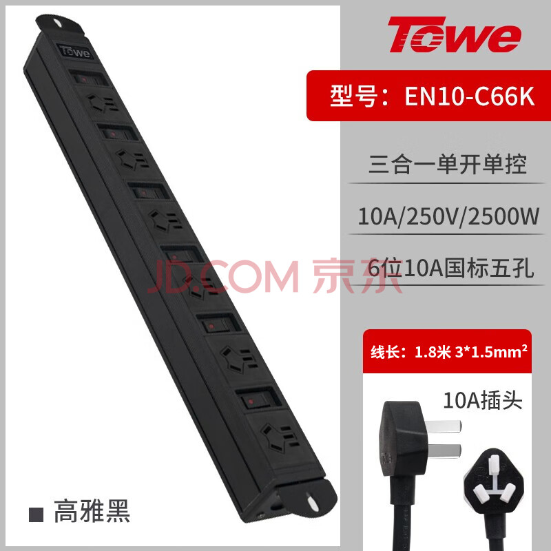 商品相册:TOWE同为分控炫彩系列PDU工业级插座6位分控 EN10/C66K高雅黑第