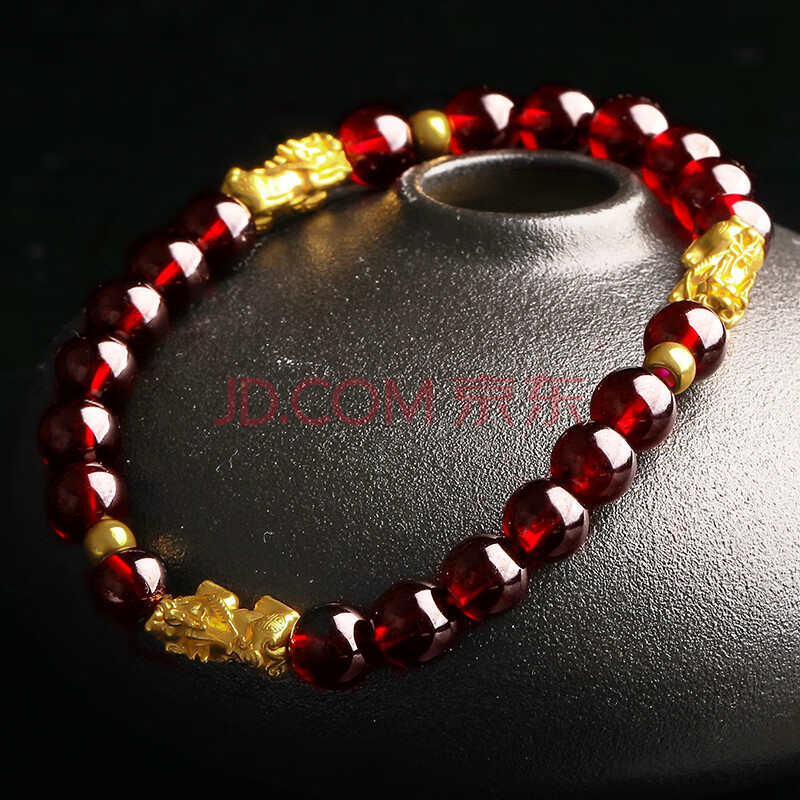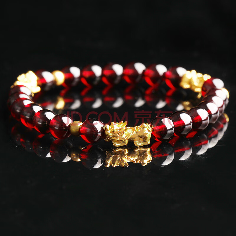 商品相册:石玥珠宝精品7-8mm石榴石手链黄金足金貔貅转运珠天然手串男女士款礼物第