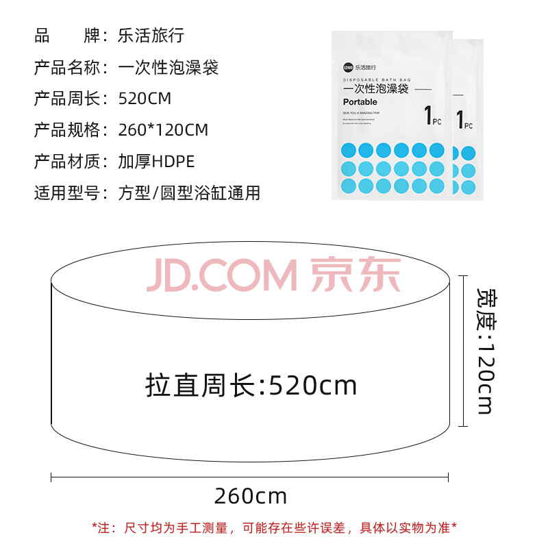 商品相册:乐活旅行一次性浴缸套洗澡袋酒店泡澡浴盆袋子加大加厚浴池膜浴袋泡浴用品第