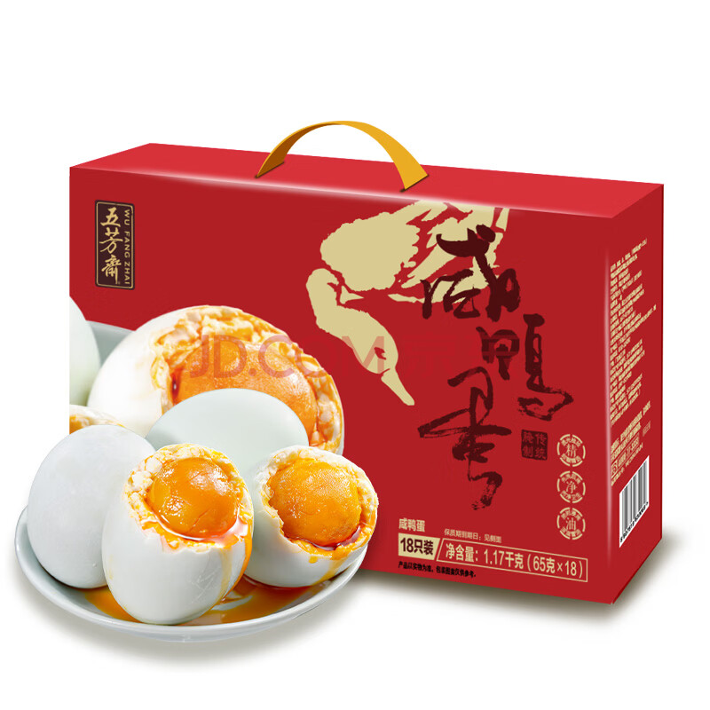商品相册:五芳斋 咸鸭蛋礼盒65克*18只 多油出油开袋即食咸蛋送礼特产1170g第
