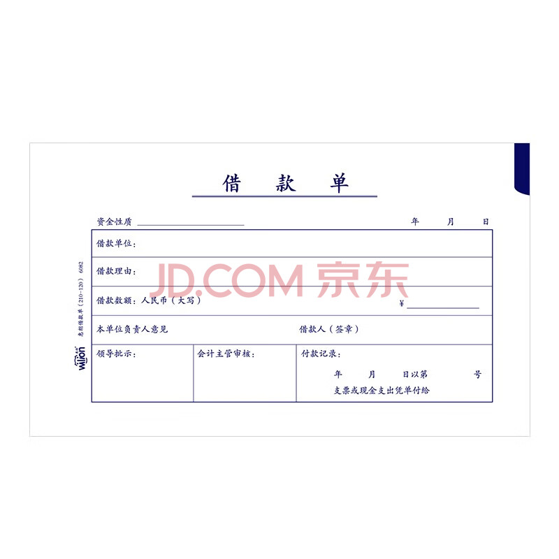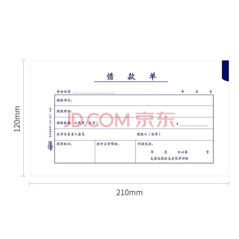 商品相册:惠朗(huilang)丙式-107借款单 财务手写单据210*120mm 50页/本 10本装 6082第