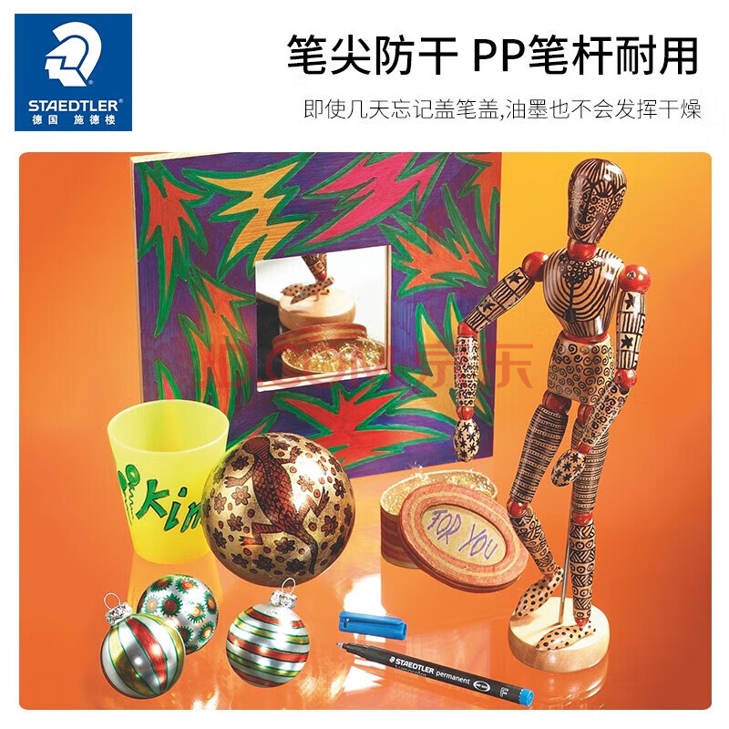 商品相册:施德楼(STAEDTLER)油性记号笔 黑色0.6mm防水速干勾线马克笔儿童美术光盘刻字办公开学必备用品单支装F318-9第