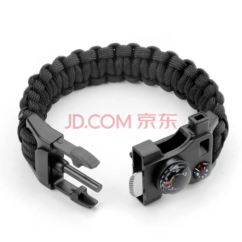 商品相册:paulone 十五种功能手链手绳伞绳登山绳 带指南针打火棒工具卡SS1002黑色第