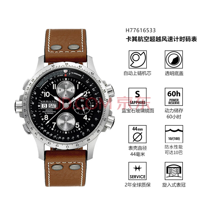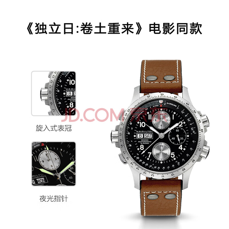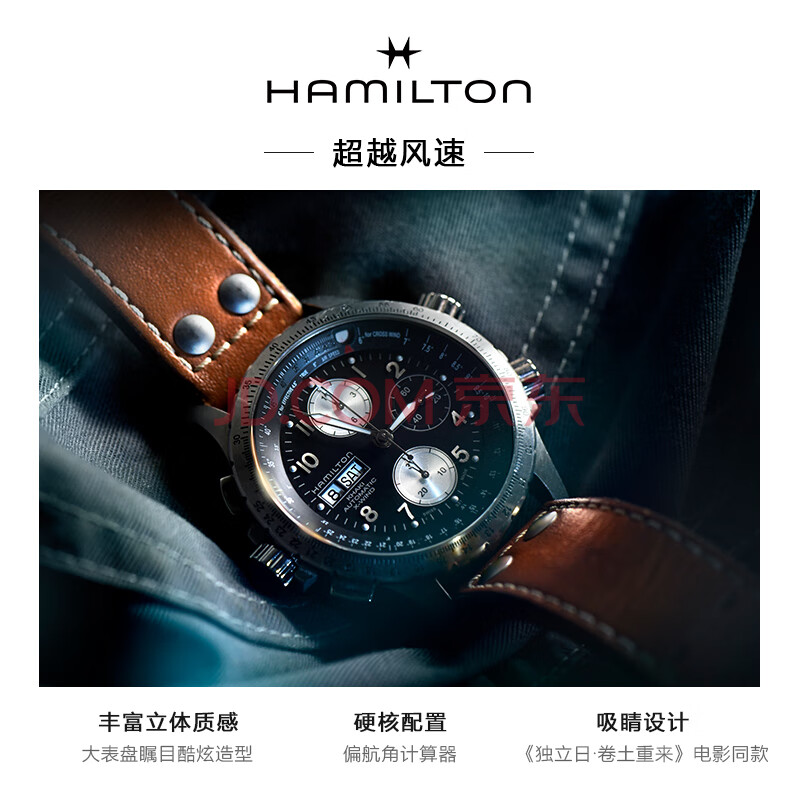 商品相册:汉米尔顿(Hamilton)汉密尔顿卡其航空超越风速计时码机械表 电影《独立日2》男主同款第