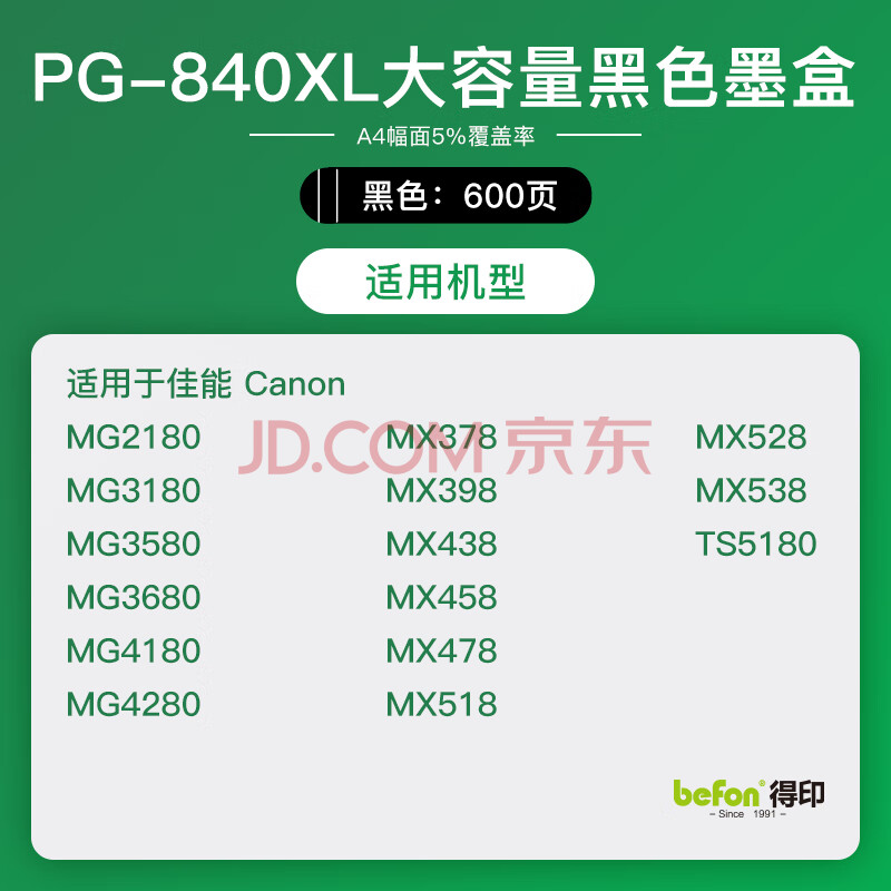商品相册:得印PG-840XL墨盒 黑色 适用佳能MG3680 MG3580 MG3180 TS5180 MX538 MX398 MG4180 MG4280 MG2180打印机第