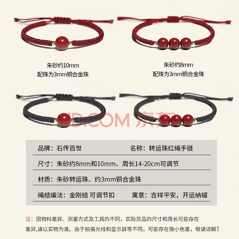 商品相册:石传百世朱砂手串2026本命年红绳手工编织手链转运珠护身符情侣生日礼物第