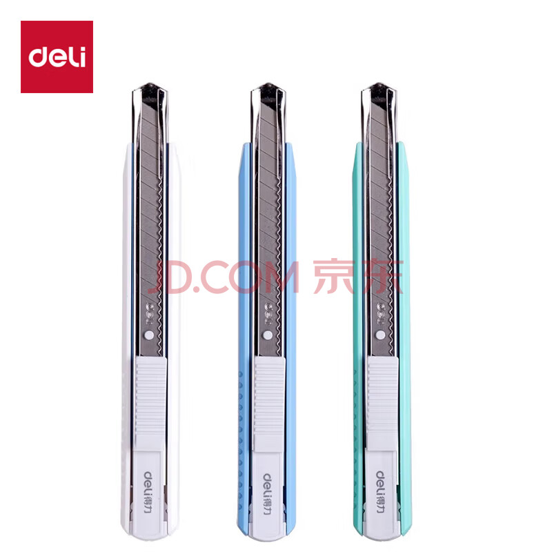 商品相册:得力小号美工刀壁纸刀铝合金外壳快递刀开箱刀裁纸刀9mm简约办公用品 2086 浅绿第
