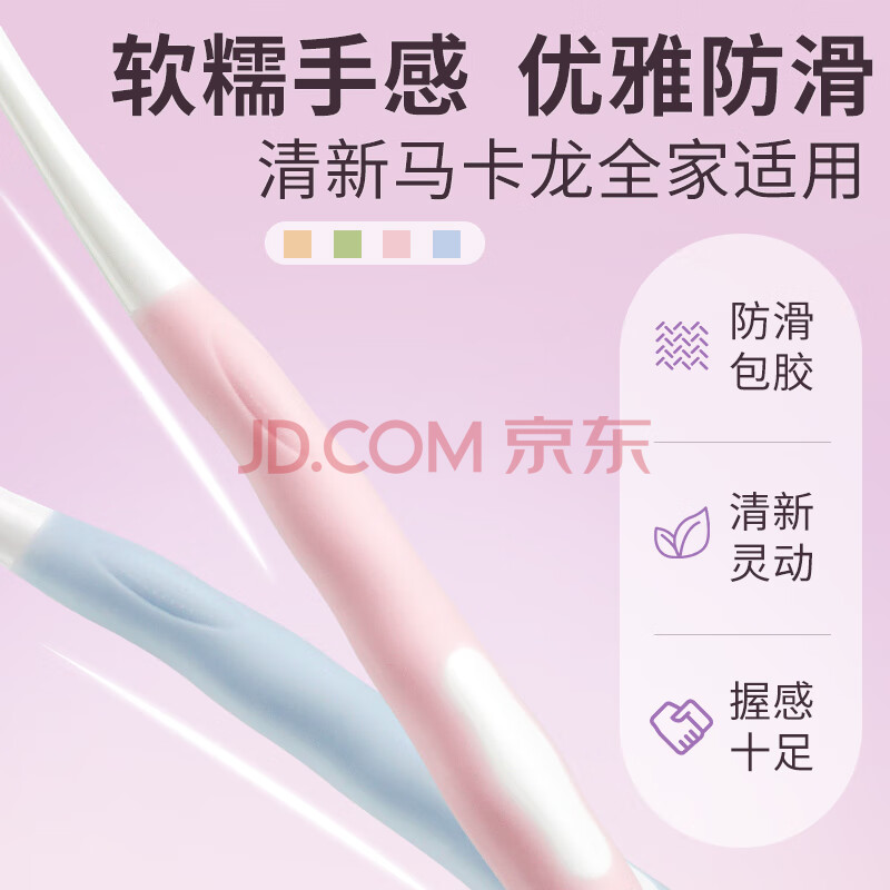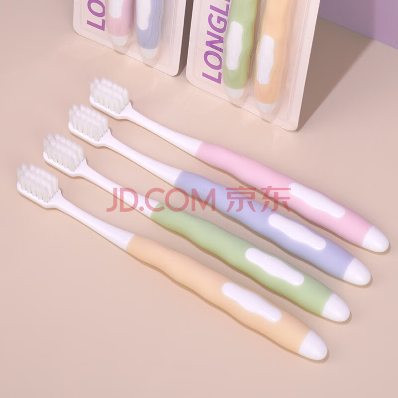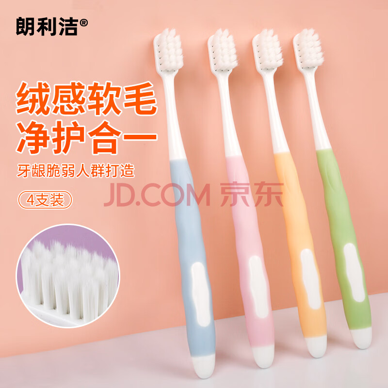 商品相册:朗利洁棉绒细柔成人软毛牙刷绵密软毛轻糯手感优雅防滑深洁口腔4支装第