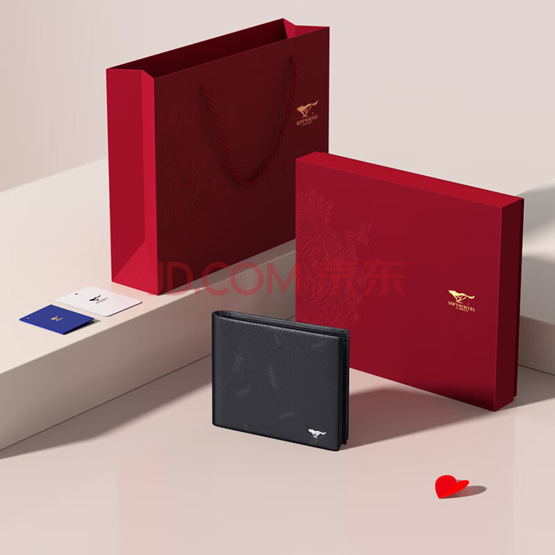 商品相册:七匹狼钱包男士真皮短款零钱夹礼盒送爸爸男友老公长辈实用生日礼物第