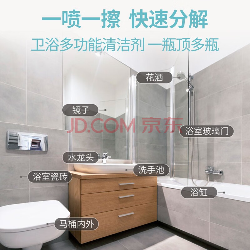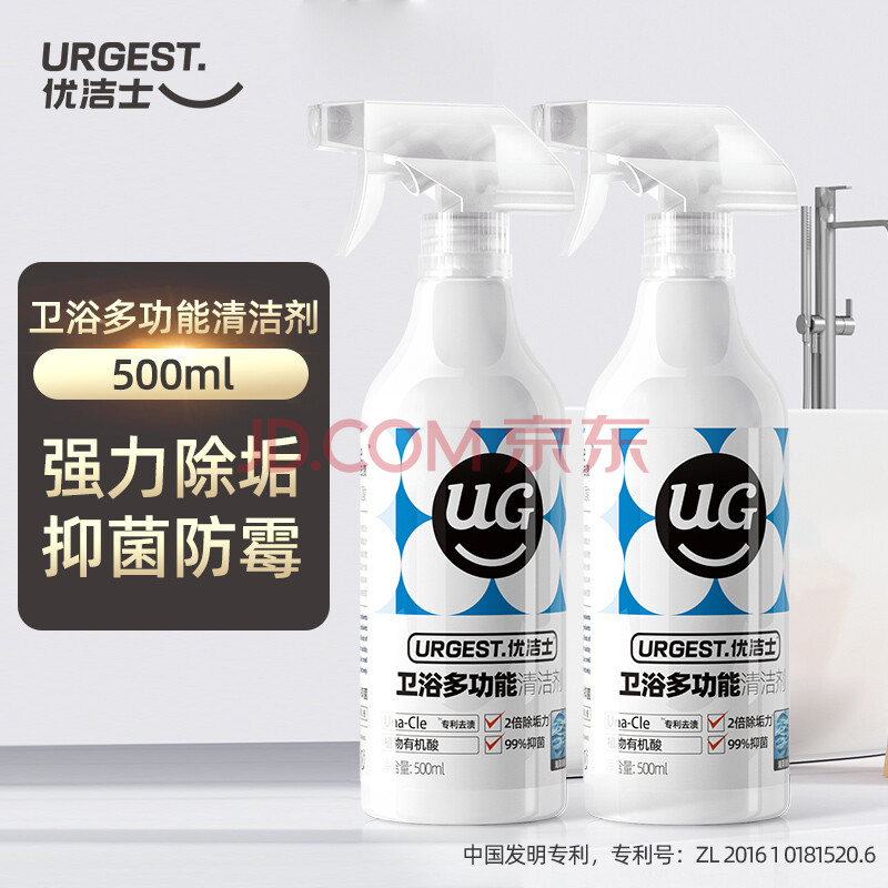 商品相册:优洁士 浴室玻璃瓷砖清洁剂 500ml 花洒水龙头去水垢不锈钢清洁剂除垢剂第